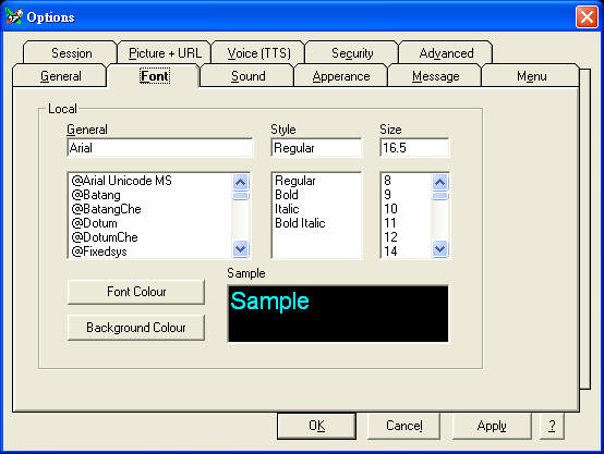 * If the font you choose and it is missing in the remote computer. x Chat will use the default font or same font for the remote computer.